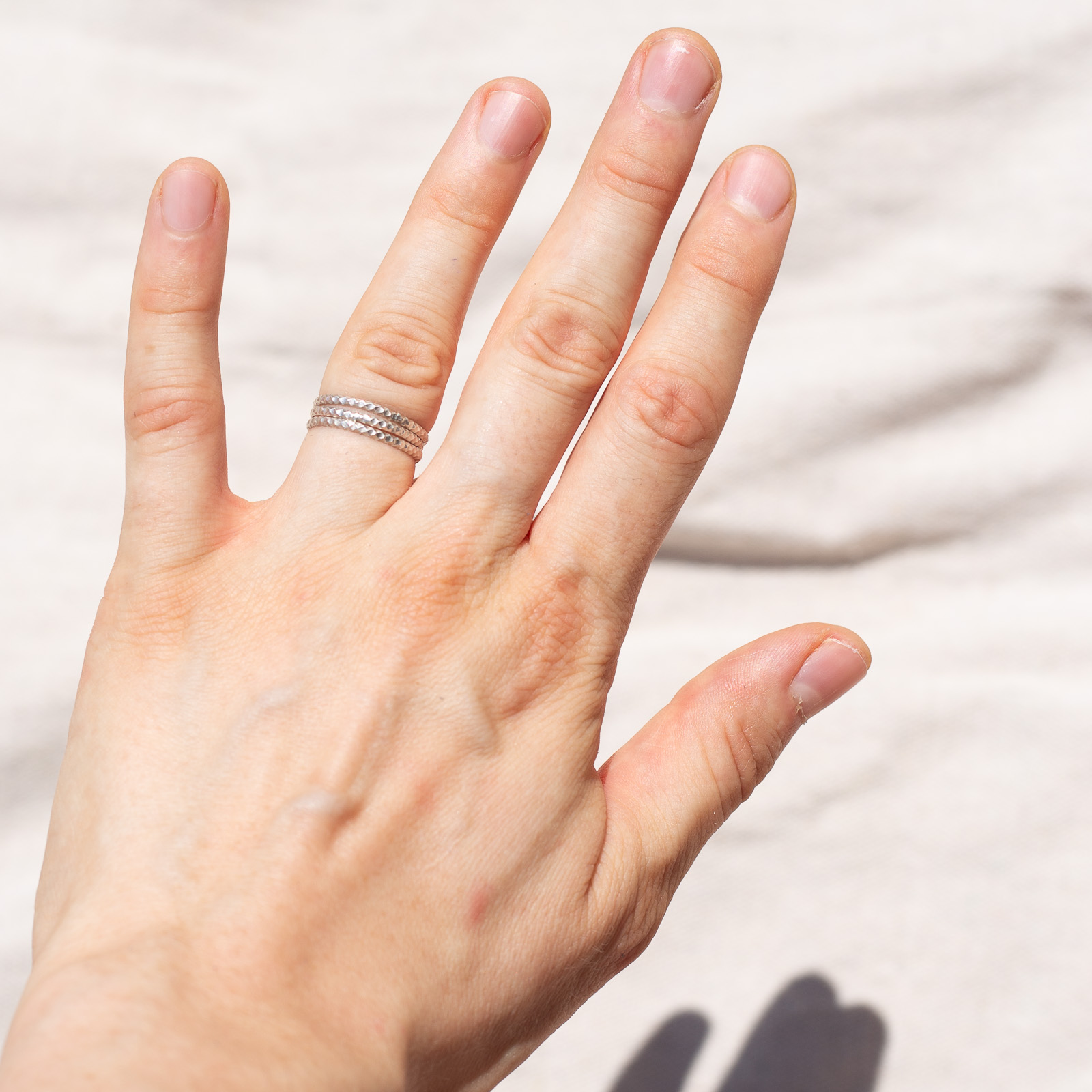 Light and comfortable these sterling silver studded stacking rings are a daily wearer.