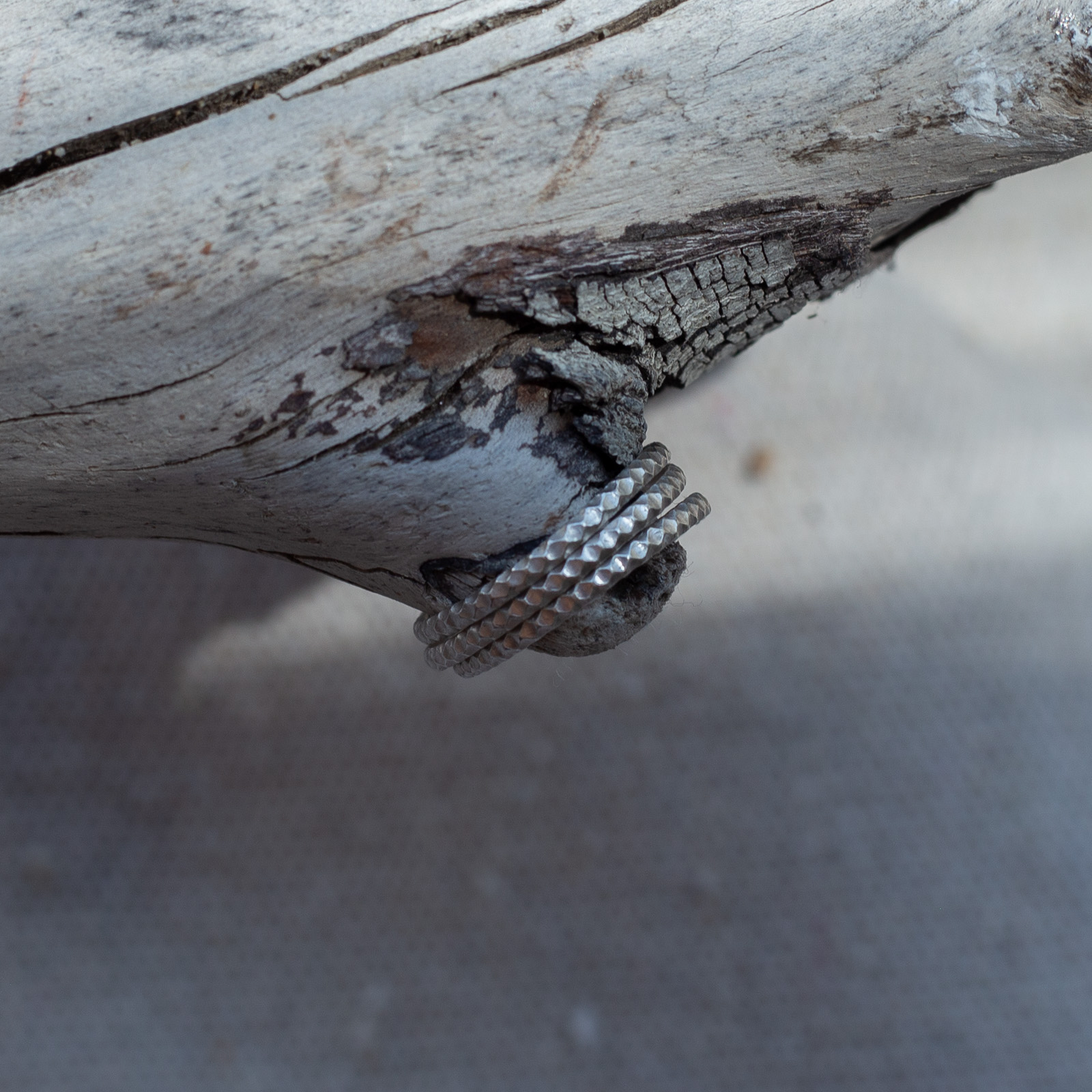 Enjoy this set of 3Â daily wearer sterling silver studded stacking rings. Crafted with care for the lovers of natural, raw, spiritual adornment.